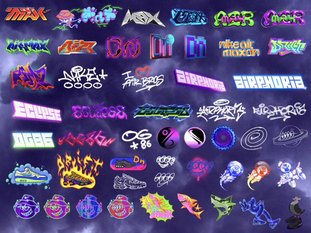 I also led the creative direction for the graffiti elements found throughout the Dn Dimension. These pieces were designed as an extension of its surreal, glitched, and air-infused identity. From stylized tags to abstract symbols, each mark was crafted to reflect the culture of Airphoria and bring extra texture and attitude to the environment.